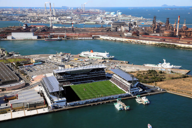 1万5300人収容とサッカーJ1基準を満たし、今季からJ3で戦うギラヴァンツ北九州が本拠とする。