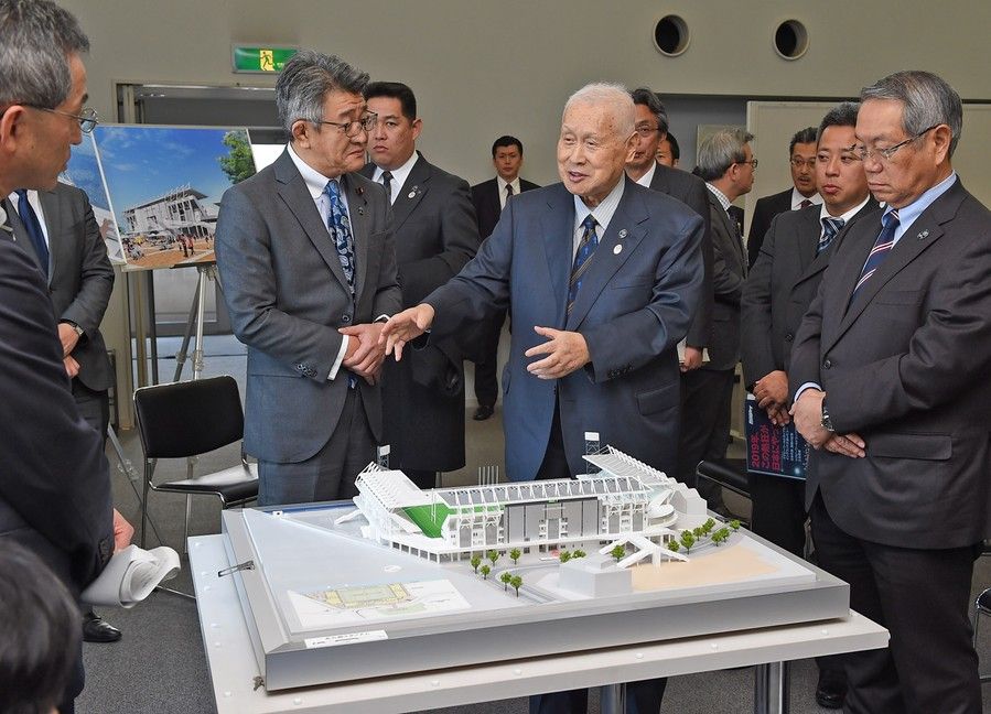 ◆<ラグビー>建設中の北九州スタジアム、森元首相が高評価
