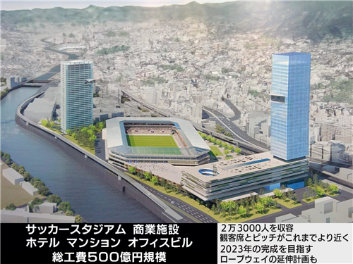 長崎の駅前に新スタジアム建てる長崎。